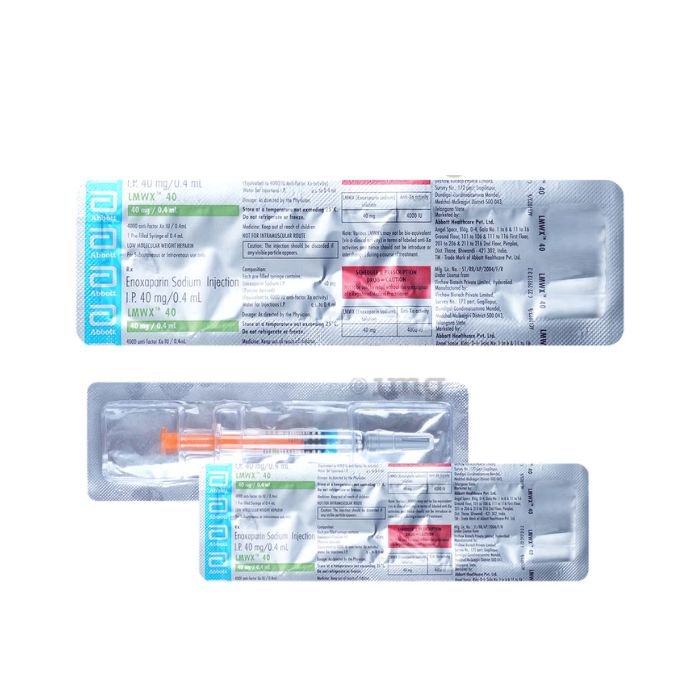 Lmwx 40 Injection is an anticoagulant used to prevent and treat harmful blood clots. It stops the existing clots from getting any bigger and restricts the formation of any new clot. It is also helpful in the prevention of blood clots in veins, a condition called deep vein thrombosis, and pulmonary embolism